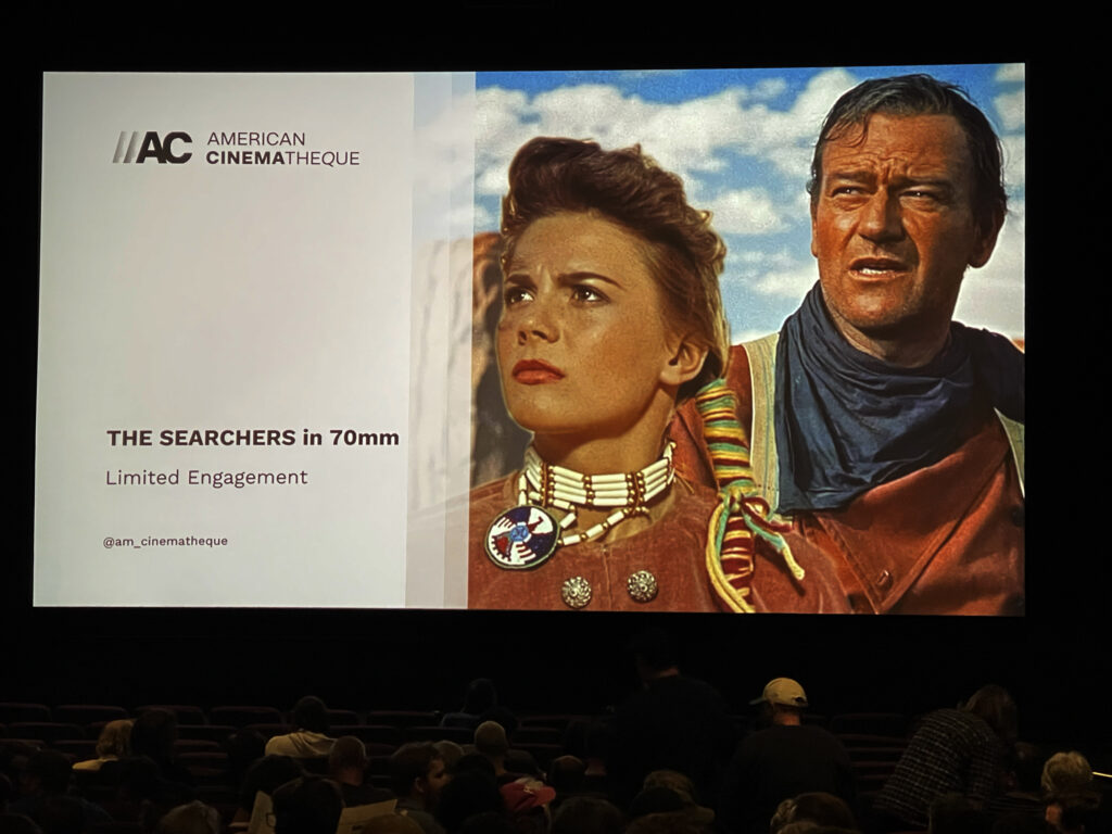 A few weeks ago, I enjoyed the rare privilege of attending a screening of John Ford’s classic western, The Searchers (1956) at the Aero Theater in Santa Monica. Along with the fabled Egyptian Theater in Hollywood, this venue is part of the American Cinematheque, an organization that since 1985 has brought enthusiasts a wealth of film programming and related in-person discussions and events. Clearly, the staff at both spots are fans as well. They always deliver a wonderful presentation and this night was no exception.