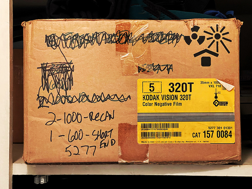 Dig into any closet or storage space and you’re guaranteed to make some interesting finds.  My latest expedition unearthed the hallowed relic you see below.  Kodak 1000′ film cartons always made the best storage vessels.  Sturdy, resistant to the elements and just the right size, this one apparently served its purpose for quite some time (production of Vision 320T 5277 ceased in 2005).  Given the radical changes of the past eighteen years, it should be bronzed or sent to the Smithsonian.