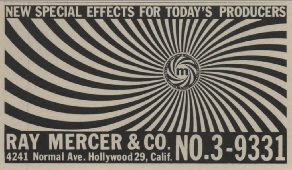 By the way, Ray Mercer (1896-1981) was an ASC member who specialized in effects work.  Though little is known about him, over a long career he amassed over three-hundred credits.  And for being what qualified as an old geezer when his ad appeared, he seems to have had no problem keeping up with the longhairs!