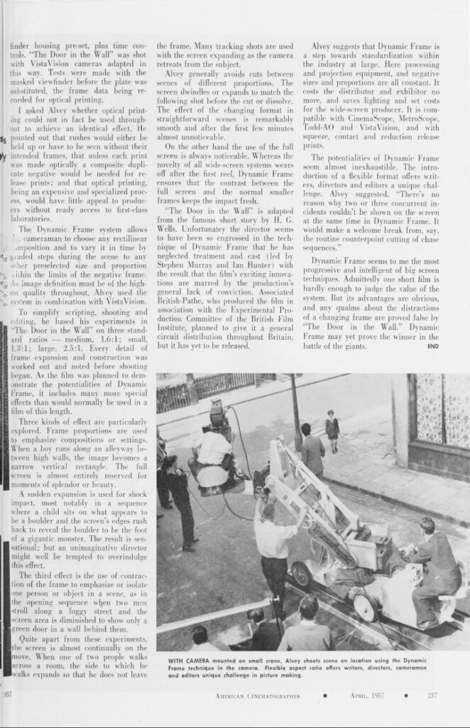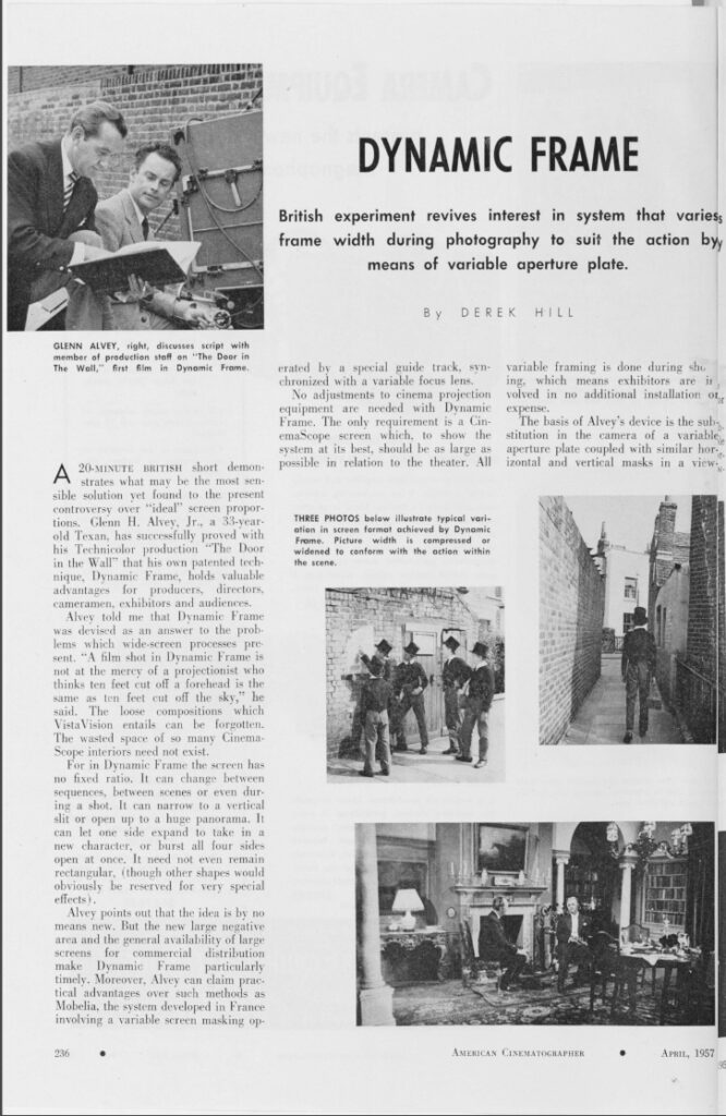 Last year’s award-winning Oppenheimer (Christopher Nolan\Hoyte van Hoytema, ASC, FSF, NFC) and Maestro (Bradley Cooper\Matthew Libatique, ASC, LPS) made good use of multiple formats within a single framework.  To once again remind us that there’s very little left that hasn’t already been shown in some form or another, below is an article from the April 1957 issue of American Cinematographer.