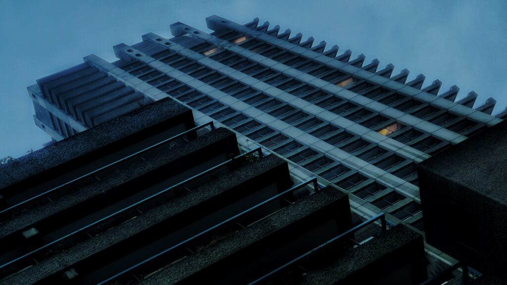 They were taken at Barbican Centre, a performing-arts and residential hub in the heart of the city. This massive reservation represents one of the greatest examples of Brutalist style architecture, and though many think of it as an eyesore, I found it an endlessly fascinating place to explore. Everywhere you look, there’s something that appeals to a cinematic eye, even as it flaunts classical definitions of beauty. As you wander about, the environment does precisely what great architecture is supposed to do – it encourages you to conjure all manner of compositions and dramatic displays.